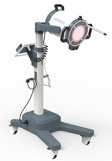 高能紅外線,采用波長為400nm-1400nm之間的寬波段光譜(包含全部紫、黃、紅等可見光和近紅外線光譜),采用高能量鹵素介質(zhì)光源受激發(fā)射產(chǎn)生。由于可見光及近紅外線均處于“人體光學(xué)窗口”波段,人體組織中的水對其吸收較少,同時采用高功率光源照射,使具有高能量的光譜穿透表皮,達到人體深部組織,透射深度達15cm,治療效果顯著。具有緩解深部疼痛;消除慢性炎癥及腫脹、改善局部血液循環(huán);降低肌張力、緩解肌痙攣;促進傷口愈合及組織修復(fù)的臨床作用,對局部和大面積的深部病灶部位可發(fā)揮整體治療作用。